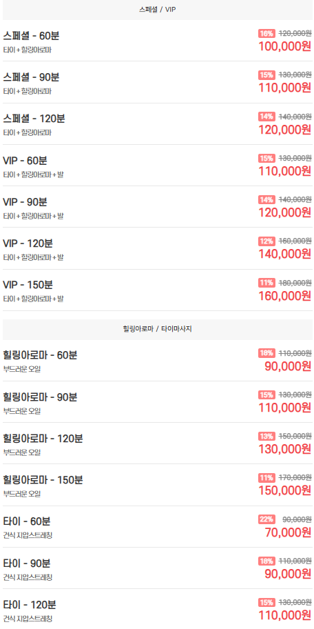 º 고품격 프로그램: 스웨디시, 아로마, 타이 등 다양한 마사지 기법을 기반으로 고객님의 니즈에 맞는 프리미엄 관리 프로그램을 제공합니다.